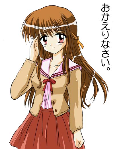 里村茜/ONE■超甘党の女子高生。料理の腕前がすごい。BSのカンパイラストに着彩したもの。デ○ーズの制服は好きですぜ(2003/03) |